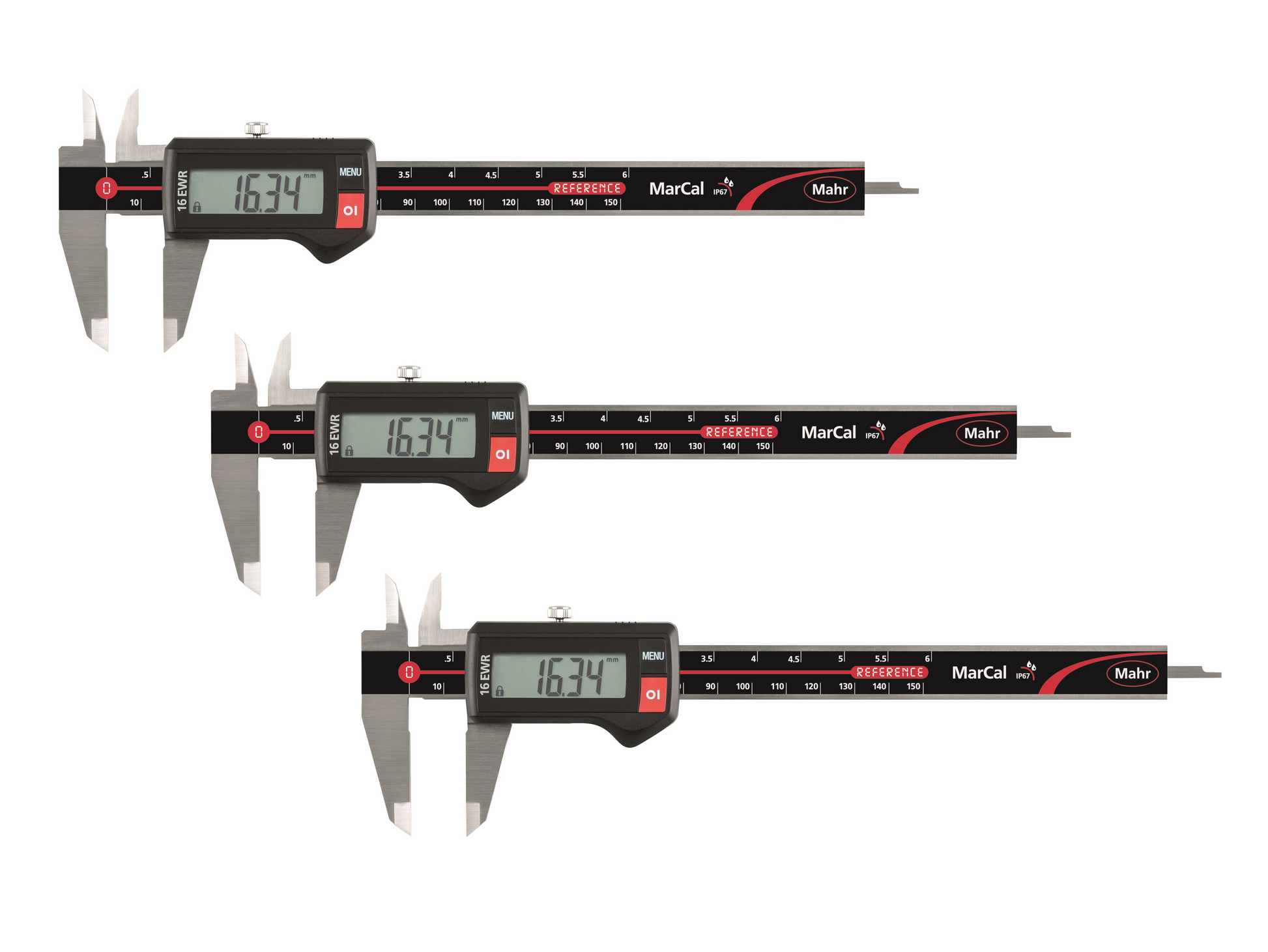 Triopack: MAHR Digitaler Messschieber 150 mm, IP67, ohne Daten, eckiges Tiefenmaß